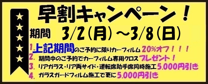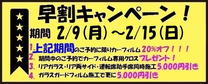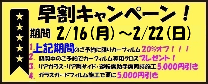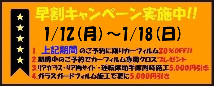 ※現在フィルムが貼付されている場合は剥がし代を別途頂きます。(サイドガラス1枚¥1,500〜10,000+消費税/リア・フロントガラス1枚¥10,000〜20,000+消費税 ガラスサイズやフィルム糊あとにより価格が異なります。)