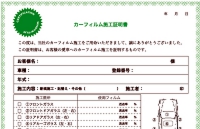 カーフィルムの施工後には保証付きの「カーフィルム施工証明書」を発行します。