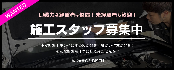 出来る限りキレイな仕上りを心がけ、お車も安全な環境で施工しています。