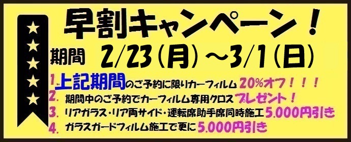 ※現在フィルムが貼付されている場合は剥がし代を別途頂きます。(サイドガラス1枚¥1,500〜10,000+消費税/リア・フロントガラス1枚¥10,000〜20,000+消費税 ガラスサイズやフィルム糊あとにより価格が異なります。)